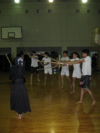 画像は、岸本先生による剣道指導の様子。しっかりと「武士道」をたたきこまれていましたね。