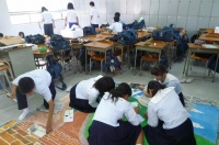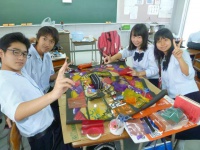 クラスみんなで力をあわせて、展示物の作製をおこなっています。
