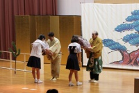 2013年08月18日 | 行事 狂言鑑賞会(7/26)画像いろいろ 茂山狂言会 茂山千五郎さん 7月26日に実施された茂山狂言会による狂言鑑賞会の画像の蔵出しです。 狂言会は盛況に終了しました。 朝早くから京都からお来しいただいた茂山狂言会の皆様方、ありがとうございました。 ●午前の部(高1~高3・中56) 午前の部が始まります 茂山千三郎さんによる「狂言教室」の様子 附子 蝸牛 濯ぎ川 花束贈呈 ●午後の部(中1~中4) 午後の部が始まります 茂山千三郎さんによる「狂言教室」の様子 附子 蝸牛 濯ぎ川 花束贈呈 ●サイン色紙 ★【動画】です。お楽しみください。