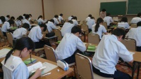 授業の様子です。今回はいつもの学校のクラスではなく、成績順に分けられたクラスで新しいクラスメイトと一緒に勉強しています。それぞれの進度にあった授業を受けることで発展的な学習から、基礎学力定着までの効率の良い勉強をそれぞれが受けることができています。