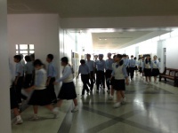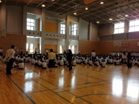 2013年06月05日 | 全校 避難訓練 本日、午前中の授業を50分に短縮して、12時から避難訓練が行われました。 地震発生と津波警報が発令されたという設定で、押さず慌てず落ち着いて避難移動しました。 実際の避難時には、机の下に身を隠し揺れがおさまったらドアを開けて逃げ道を確保します。 移動する時は鞄などで頭を守って、ガラスなどに気を付けて移動しましょう。 先生方も被害状況の確認や、近隣住民の方々の避難誘導など、万一に備えて役割を確認しました。