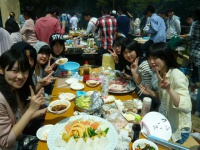 食材が到着し、いよいよ調理開始です。お肉や野菜以外に、焼きそばやじゃがバター、マシュマロなど、各班好きなものを持参して焼いています。
