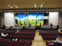 本日は、朝の10時から開智ホールで仕込みが行われています。劇団の方は役者さんや裏方さんを含めて総勢50名という大所帯です。まだまだ、夜おそくまで仕込みが続きます。