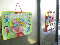 左の画像のように、園児達の作品が事務室前に掲示されています。