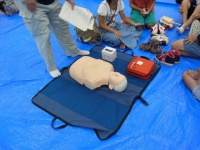 午後は、体育館で災害が起こった時に備えてのパーテーション、簡易トイレを作ったり、担架の使い方を実習する班と人口呼吸.AEDの使用法を学習する班でそれぞれ貴重な経験を体験できました。