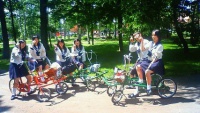 まずはパークの馬と一緒にクラス写真を撮り、その後は自由にレンタサイクルやテニスやバスケットボールを楽しみました。