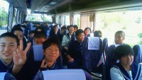 生徒はバスの中から牛や馬を見つけ、元気にバスドライブを楽しんでいます。