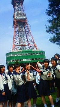 大通公園のテレビ塔前でクラス写真を撮影した後、班別に自由行動となります。