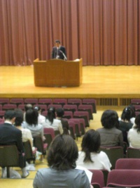 2010年05月29日 | 高等部 高等部1年生保護者会 教務規定の説明 5月29日(土)に高等部1学年の保護者会が開智ホール実施されました。 近藤校長からの挨拶、教務部より教務規定の説明、進路部より昨年度の入試結果や今年度の進路計画などの説明がありました。 昨年度の入試結果についての説明 全体会の後は各クラスに別れての学級懇談会があり、各担任は、保護者の方々と初顔合わせを行いました。 多数の保護者の方の出席がありました。ありがとうございました。