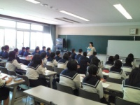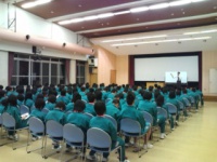 夕食のあと、講堂へ移動し、19時10分から高校生活ガイダンスです。