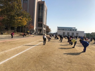 開会式では学校長および育友会会長からご挨拶があり、その後準備体操を行いました。