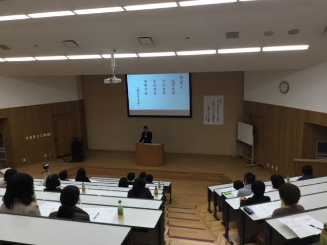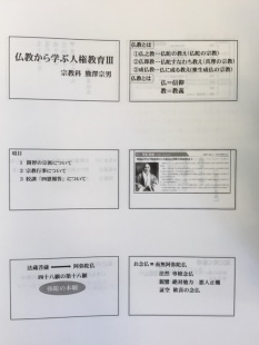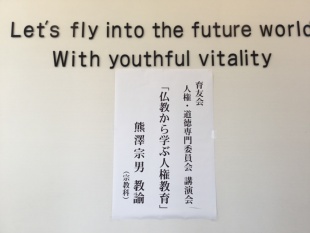 2019年12月14日(土) 育友会活動 人権道徳専門委員会 講演会 12月14日(土)14:00~15:30にプラセットホールにて、本校宗教家教諭の熊澤宗男が本校の人権・道徳教育の基本となる、建学の精神の「四恩報答」について理解を深めていただく機会として、「仏教から学ぶ人権教育」というテーマで講演を開きました。35名の保護者の皆様に参加していただきました。 お忙しいところ、ご参加いただきました保護者の皆様、有り難うございました。
