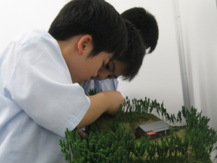 普段はジオラマを作っています。開智の地元である和歌山の風景をテーマにしています。平成27年度は南海電車沿線、平成28年度は鵬雲洞でした。