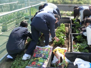 プランターや運動場に開拓した畑で,部員が育ててみたい野菜や花を育てます。