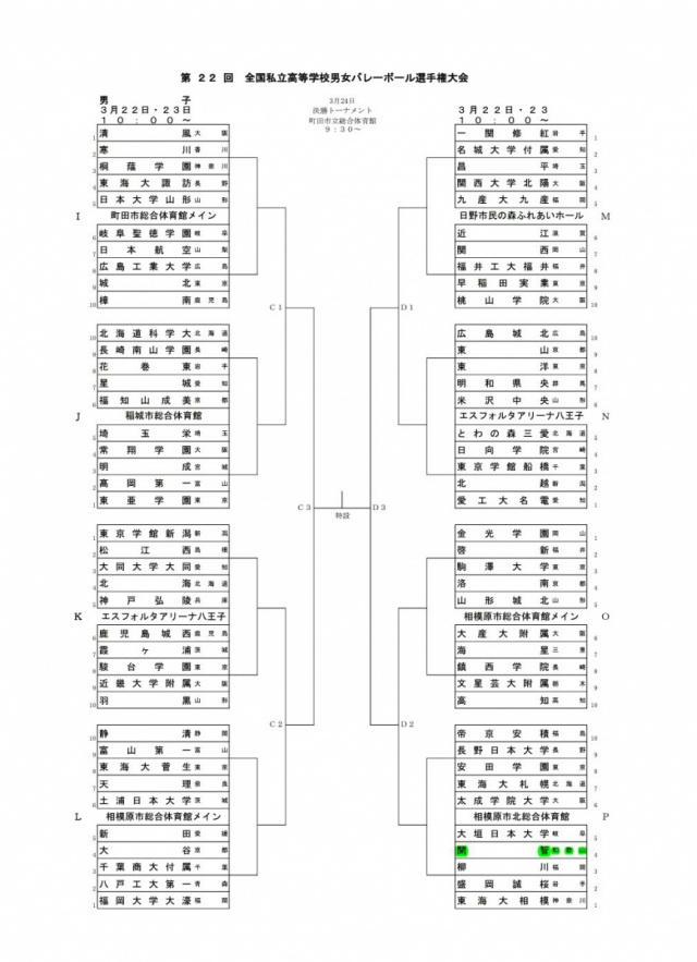 第5時間(14:00) vs.大垣日本大学(岐阜) となります。