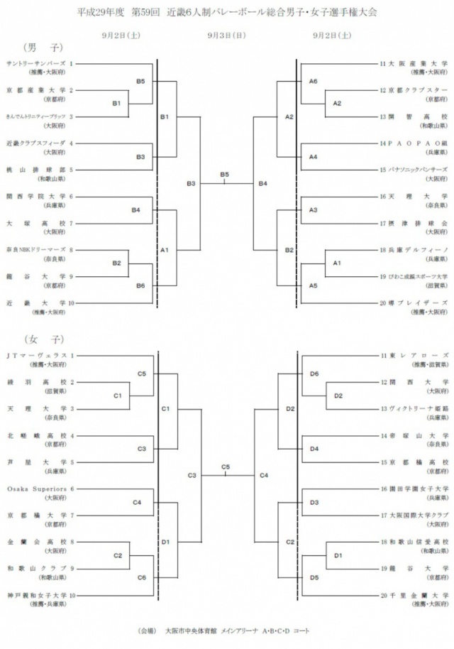 9月2日(土)・3日(日) 大阪市中央体育館にて「近畿6人制バレーボール総合男子・女子選手権大会」が開催されています。