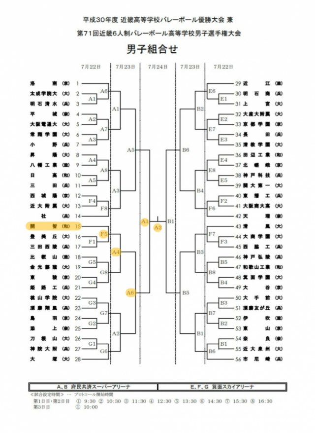 2018年06月27日(水) 男バレ最新ニュース < 男子チーム紹介 < バレーボールだより < 学校生活 【近畿大会】組み合わせ決定! 開智高校の初戦 日時:7月22日(日)13時30分 会場:箕面スカイアリーナ Fコート 相手:登美丘(大阪)と三田西陵(兵庫)の勝者