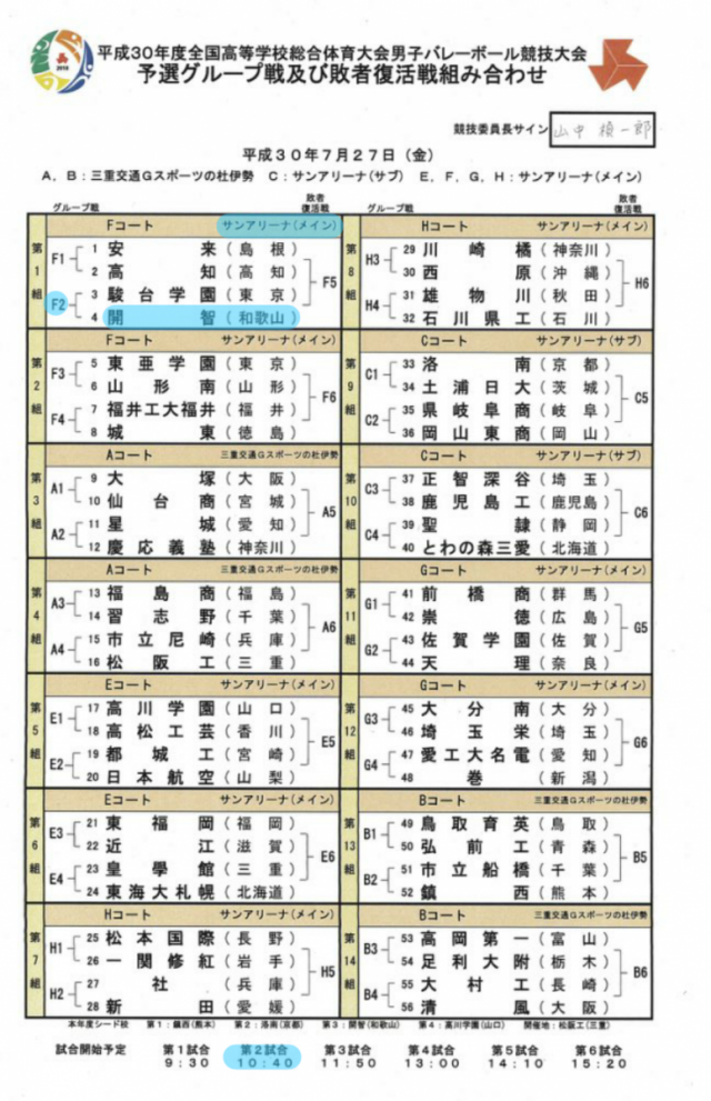 2018年07月01日(日) 男バレ最新ニュース < 男子チーム紹介 < バレーボールだより < 学校生活 【インターハイ】グループ戦組み合わせ決定! 日時:7月27日(金) 10時40分 場所:三重県 サンアリーナ(メイン) Fコート第2試合 相手:駿台学園(東京1)