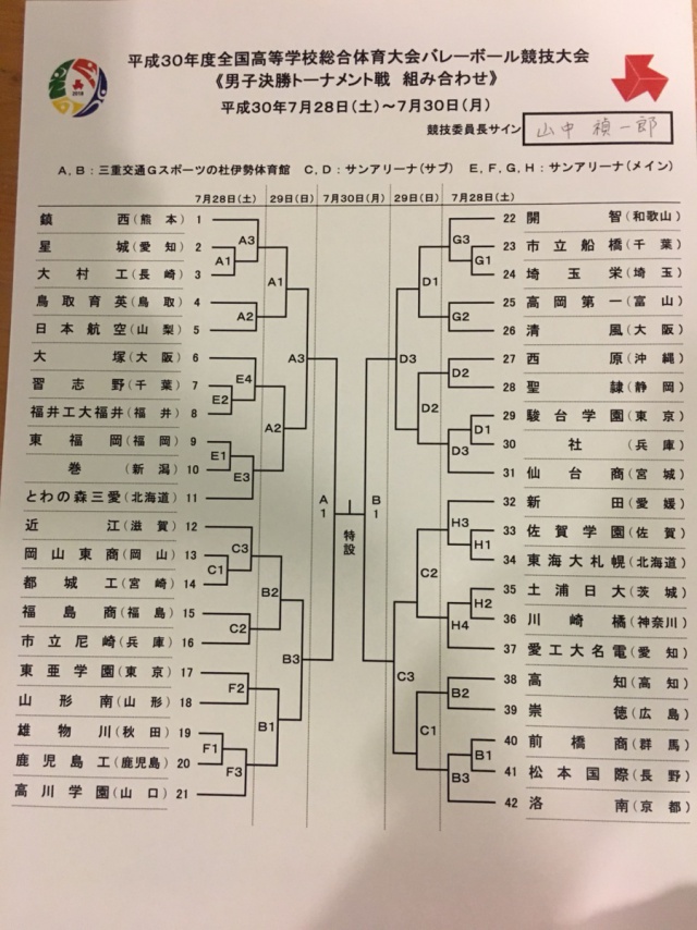 2018年07月28日(土) 男バレ最新ニュース < 男子チーム紹介 < バレーボールだより < 学校生活 【インターハイ】予選グループ突破! 【予選グループ戦】 vs.駿台学園(東京1) ○25-22 ●8-25 ●15-25 【敗者復活戦】 vs.安来(島根) ○25-19 ○25-23 予選グループ突破! 【決勝トーナメント】 第3シードのため2回戦からの参加となります。 vs.市立船橋(千葉)と埼玉栄(埼玉)の勝者 応援よろしくお願いします!