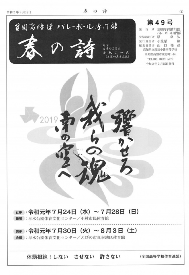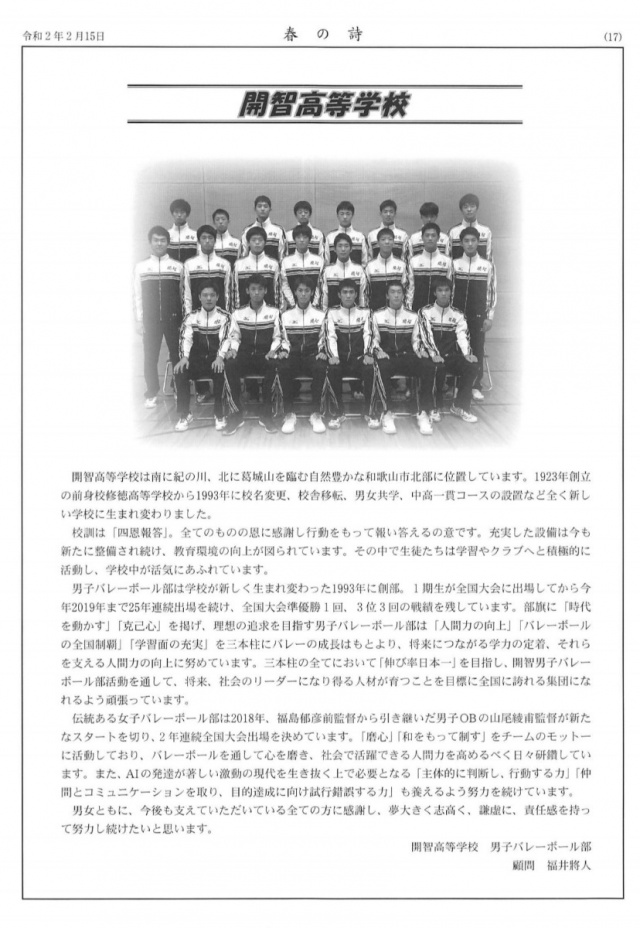 2020年02月18日(火) 男バレ最新ニュース < 男子チーム紹介 < バレーボールだより < 学校生活 「春の詩」に載りました! 全国高体連バレーボール専門部誌「春の詩」に男子バレーボール部が掲載されました!