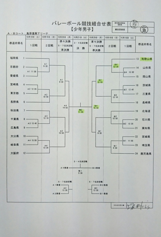 2014年09月07日(日) 男バレ最新ニュース < 男子チーム紹介 < バレーボールだより < 学校生活 【長崎国体】組合せ決定! 日時:10月19日(日) 第4試合(13時30分開始予定) 場所:長崎県島原市 島原復興アリーナ 相手:山形県と岡山県の勝者 インターハイのリベンジはこの長崎国体で!! 勝ち進めば、地元開催で優勝を目指す長崎県とも対戦します。 きっとすごい応援の数だと思います。 みなさんのお力が必要です。 是非会場に足を運んで応援してください! よろしくお願いいたします。