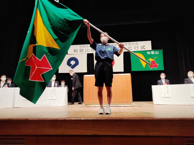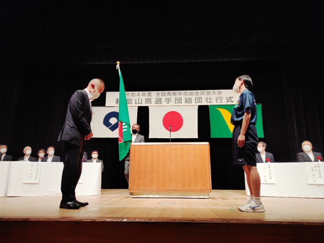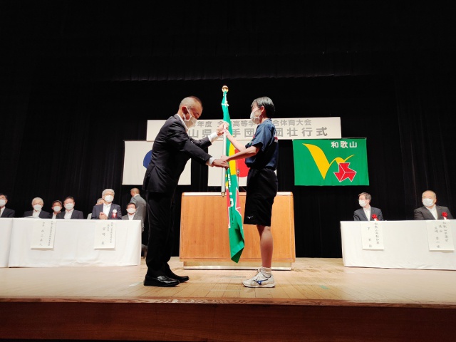 2022年07月08日(金) 女バレ最新ニュース < 女子チーム紹介 < バレーボールだより < 学校生活 和歌山県選手団結団壮行式 昨日、和歌山県民文化会館にて行われた壮行式に出席しました。 今年は女子バレーボール競技が総合開会式に参加するため、全種目を代表して『和歌山県高体連旗の授与』をしていただきました。 本校主将の梶山咲幸(城南学園中→開智高3年)が高体連会長の西上様より旗を受け取りました。 改めて、身が引き締まる思いですね。 様々な種目でインターハイに出場される皆様、和歌山県の代表としての誇りを持って、戦いましょう!!