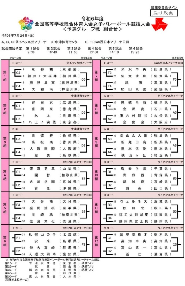 2024年07月01日(月) 女バレ最新ニュース < 女子チーム紹介 < バレーボールだより < 学校生活 【インターハイ】組み合わせ決定! 日時:7月26日(金) 場所:SWS西日本アリーナ日田 Eコート 時間:第1試合(9:30) 相手:帝京第三(山梨) 応援よろしくお願いいたします!