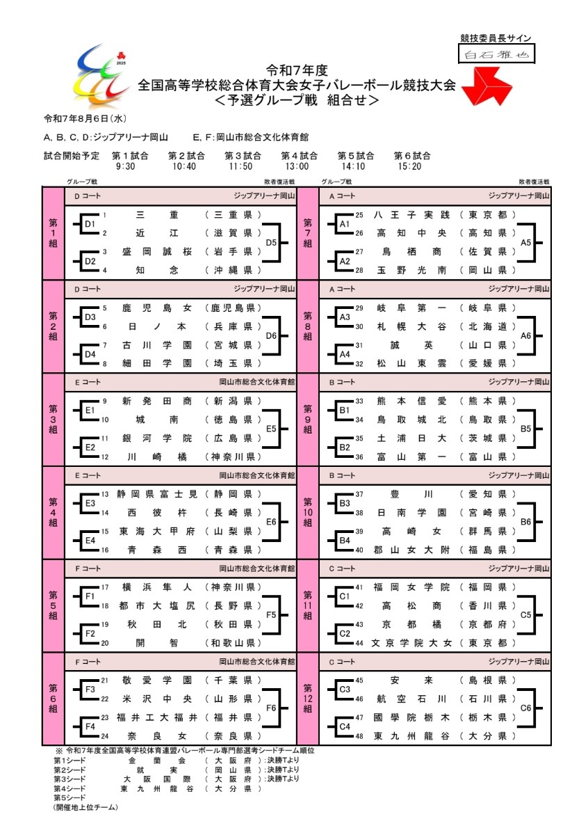 2025年06月30日(月) 女バレ最新ニュース < 女子チーム紹介 < バレーボールだより < 学校生活 【インターハイ】組み合わせ決定! 日時:8月6日(水) 場所:岡山市総合文化体育館 Fコート 時間:第2試合(10:40) 相手:秋田北(秋田) 応援よろしくお願いいたします!
